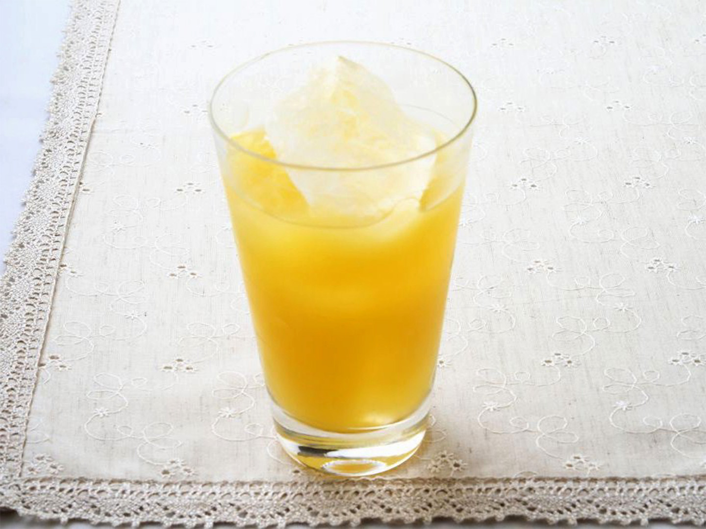 - グラスにオレンジジュースを入れ、「りんご酢」を加えて混ぜる。