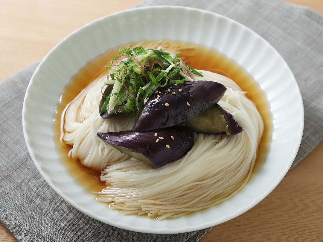 レンチンなすと香味野菜のせそうめん