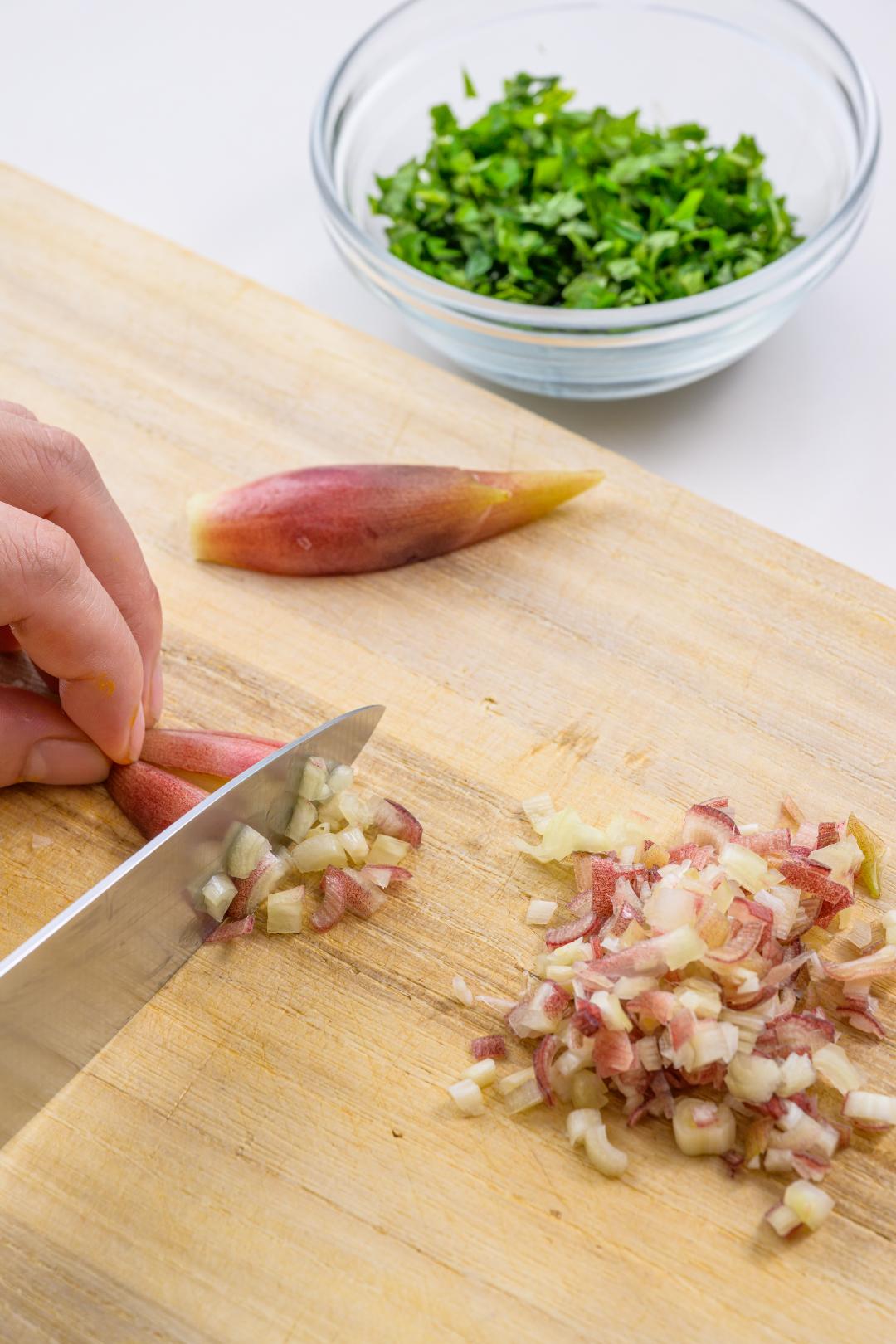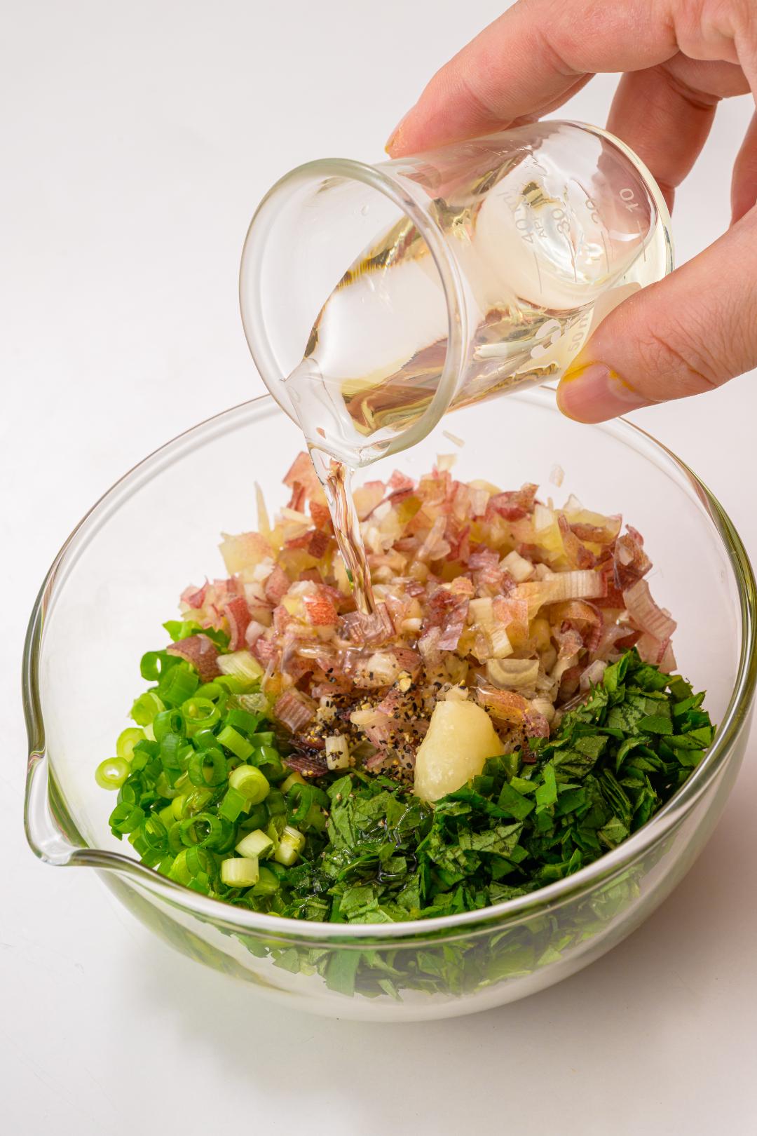 - 1豆腐は水切りする。青じそとみょうがは粗みじん切りにする。
