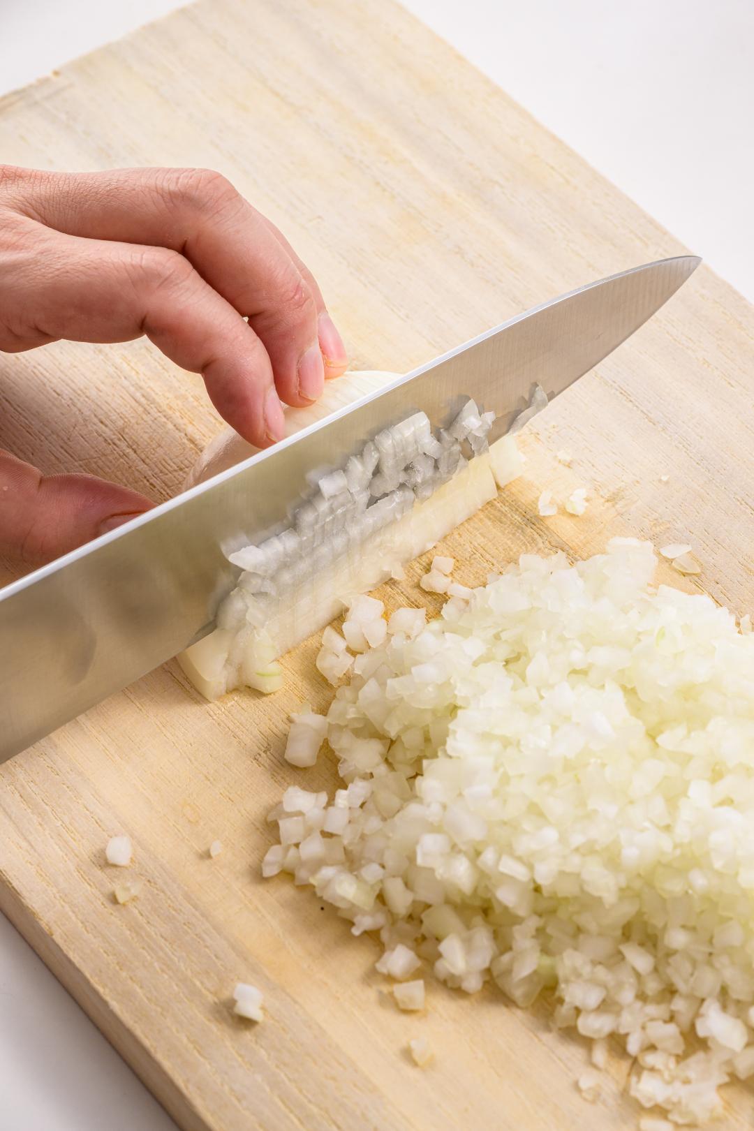 - 1たまねぎはみじん切りにする。納豆は添付のたれを加え、混ぜる。