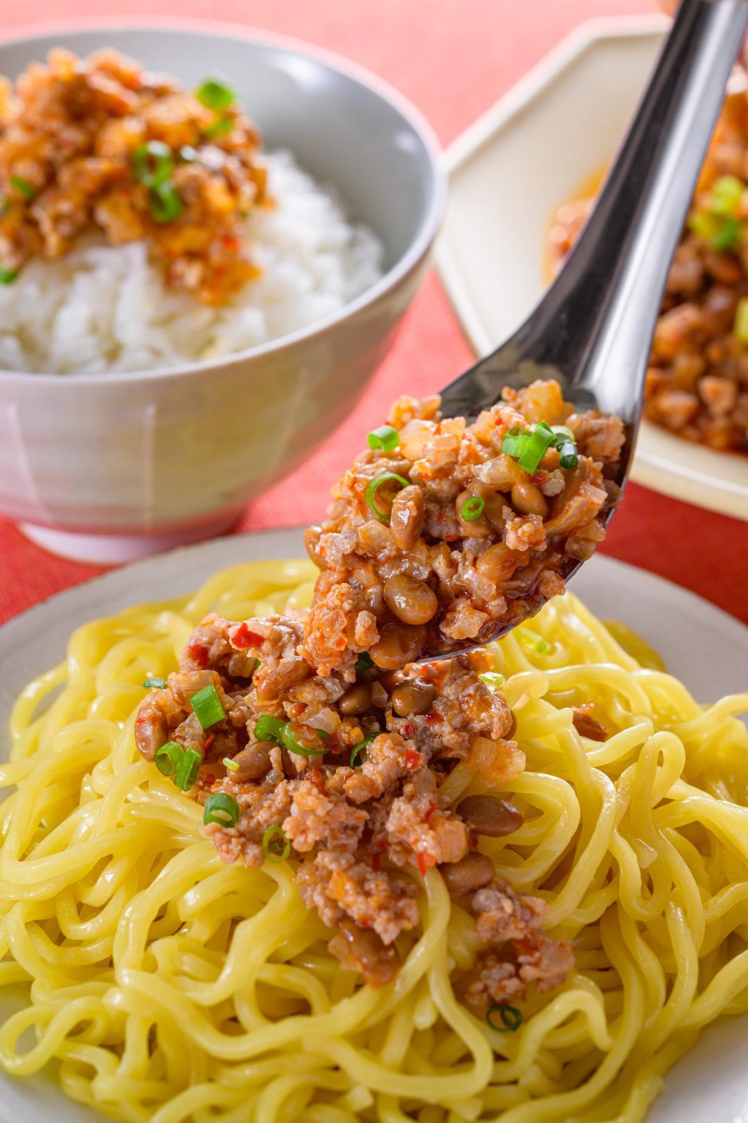 納豆がごはんのお供に欠かせないやみつきおかずに! 豆板醤を抜くと辛味がなくなるため、お子様にもおすすめです。