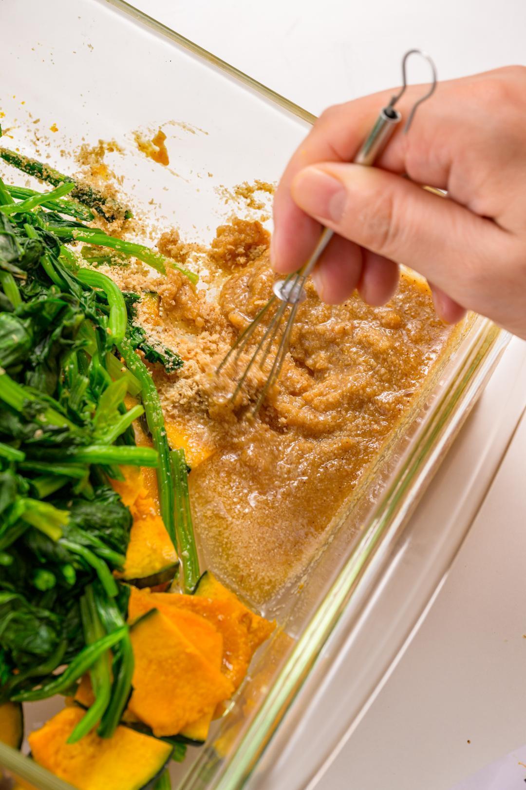 かぼちゃとほうれん草の味噌ごま和え