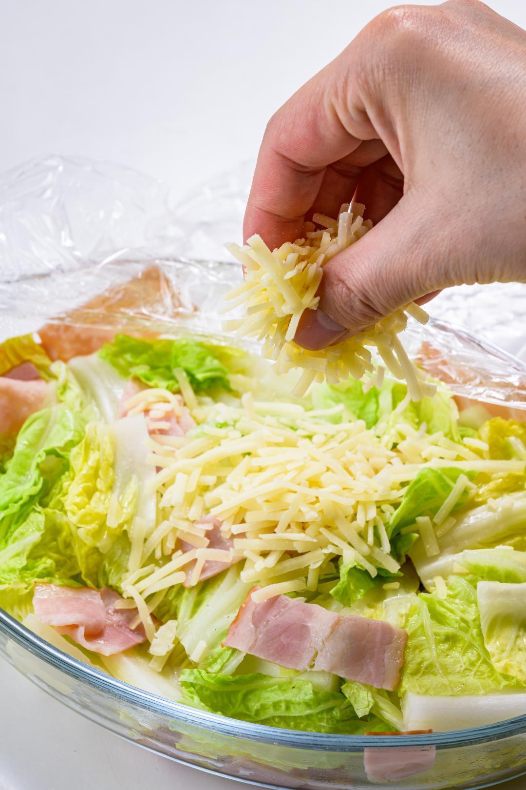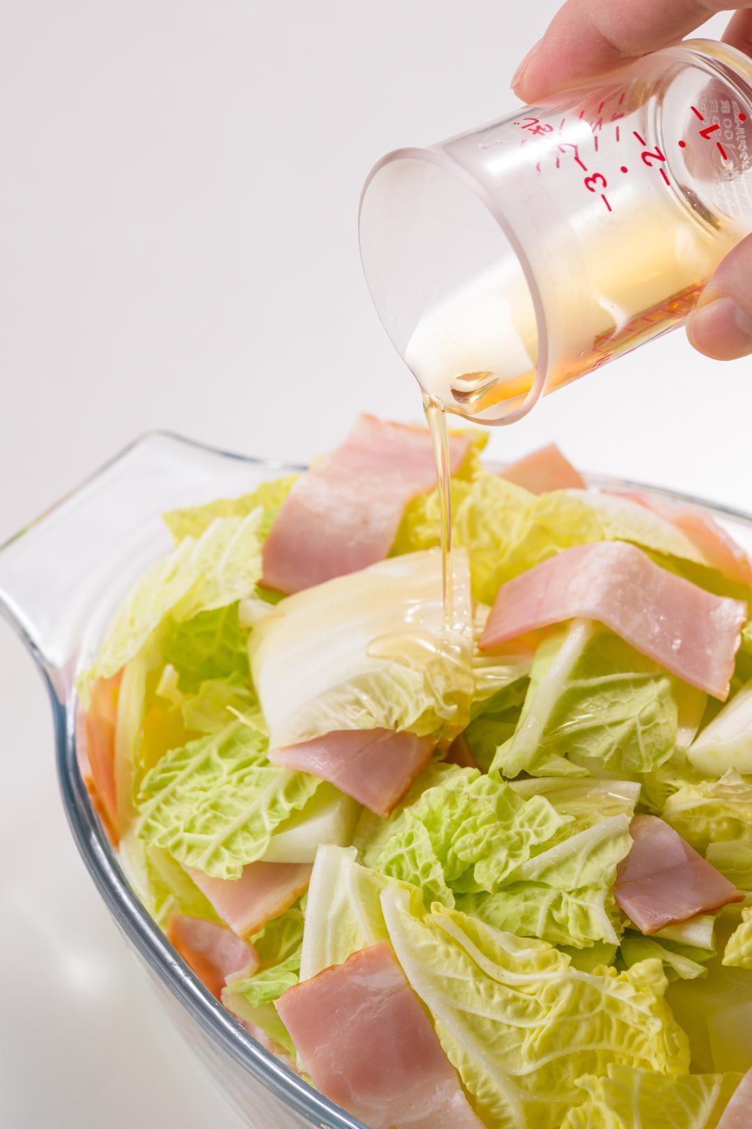 - 1白菜は食べやすい大きさに、ベーコンは2cm幅に切る。