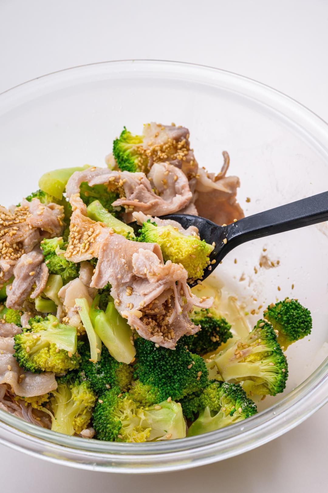 豚バラとブロッコリーの香味ごまだれ 鰹節仕立て